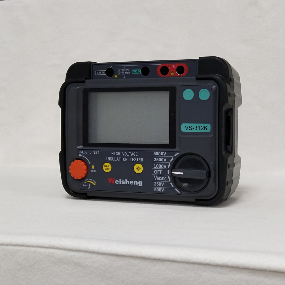 Weshine® VS-3126 ist batteriebetriebenAnaloger Isolationstestermit digitaler und analoger Lichtbogenanzeige, konzipiert für Hochspannungs-Isolationswiderstandsprüfungen bei der Wartung und Instandhaltung von Kabeln, rotierenden Maschinen, Transformatoren, Schaltanlagen und Industrieanwendungen.