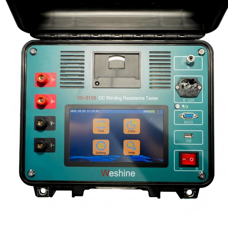 10-A-Transformator-Widerstandstester für die Weshine®-Wicklungswiderstandsprüfung von Transformatoren mit CE-Zertifikat, hohe Qualität und Genauigkeit, nach nationalen Standards erfunden und hergestellt, komplette elektrische Prüflösung verfügbar. Kontaktieren Sie uns für weitere Informationen zum Wicklungswiderstandstest von Transformatoren von Weshine!